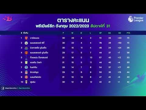 อ พเดทตารางคะแนนพร เม ยร ล ก โปรแกรมถ ายทอดสด 23 26 เม ย น